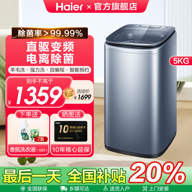 海尔5公斤婴儿童全自动迷你波轮滚筒洗衣机以旧换新补贴B378旗舰