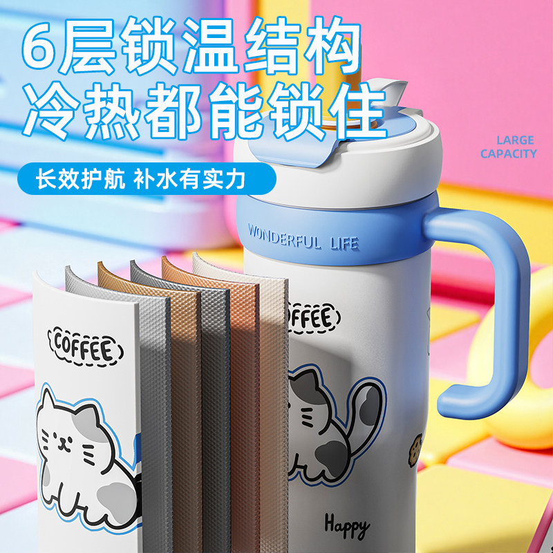 大容量保温杯女2025新款高颜值冰霸杯陶瓷吸管水杯巨无霸吨杯子吨