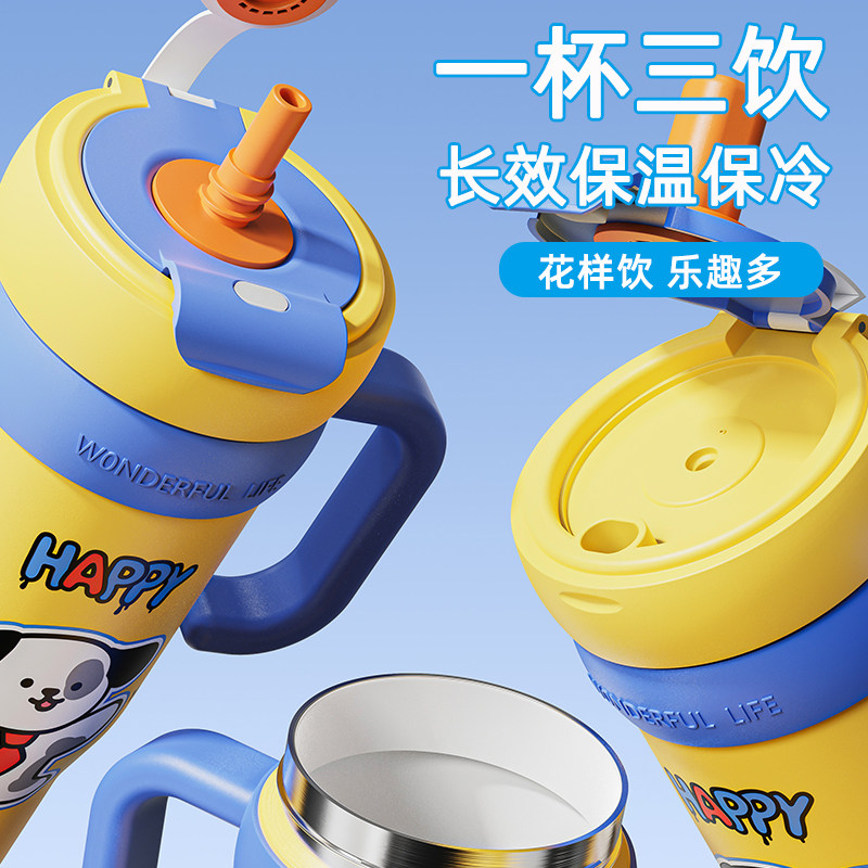杯具熊轻暖双饮保温杯高颜值情侣水杯纯色简约学生上学吸管杯新款