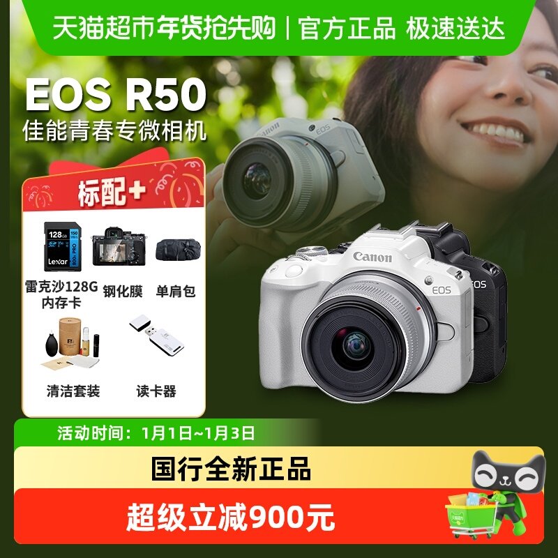 佳能R50微单相机高清数码便携4K视频入门级旅游美颜自拍照相机