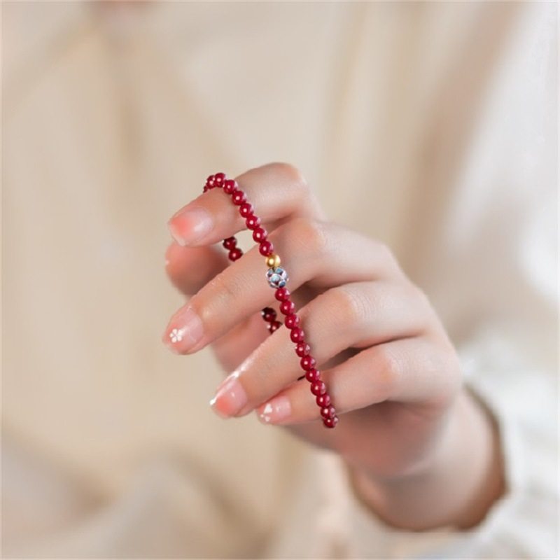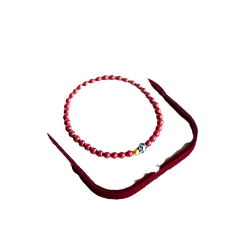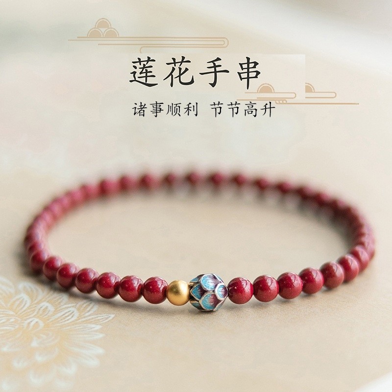 朱砂手串女款蓝莲花金色好运珠本命兔年手链遇莲小众好运饰品