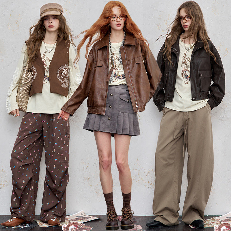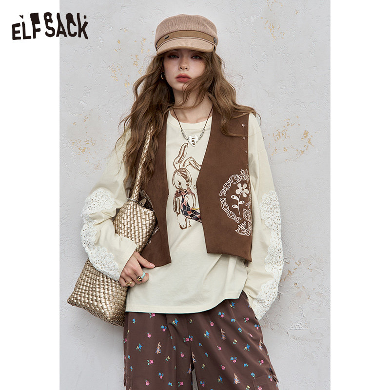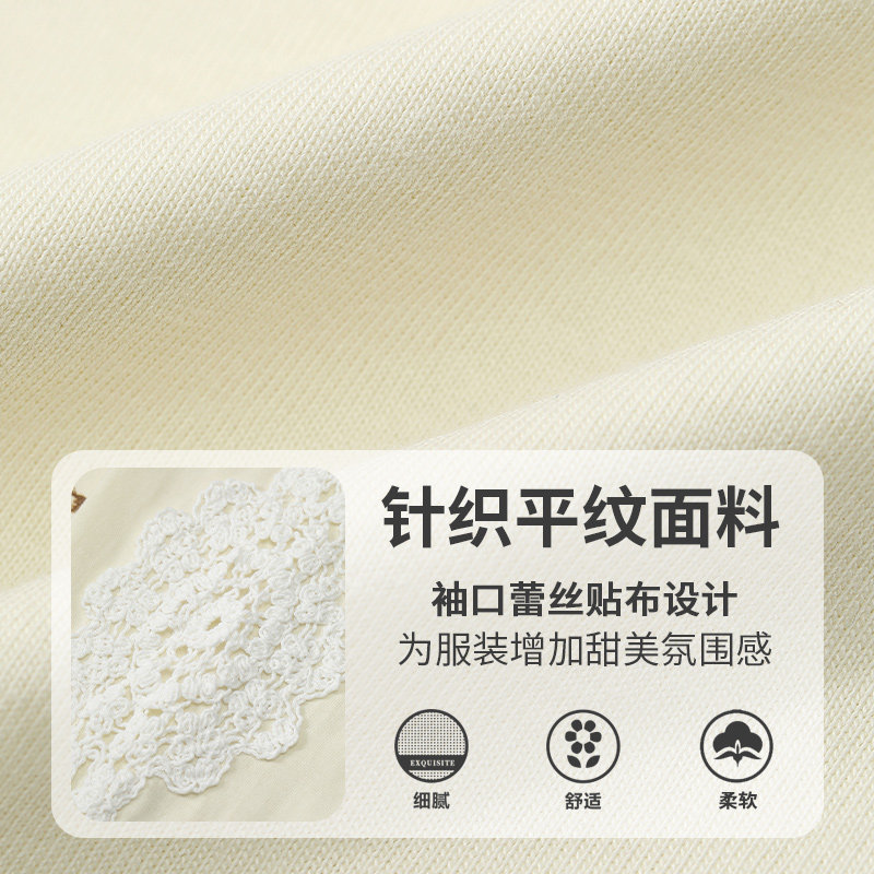 妖精的口袋蕾丝拼接印花长袖t恤女2025年早秋新款设计感休闲上衣