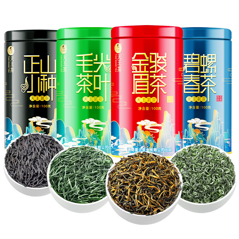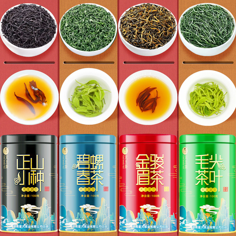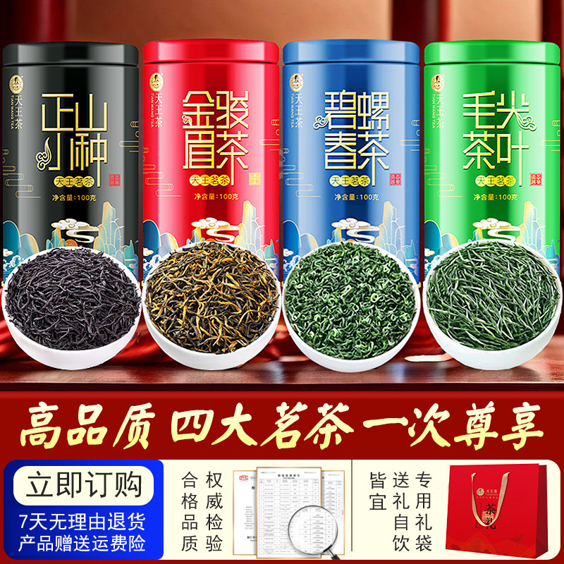 四大茗茶 碧螺春/毛尖/金骏眉/正山小种各1罐*100g