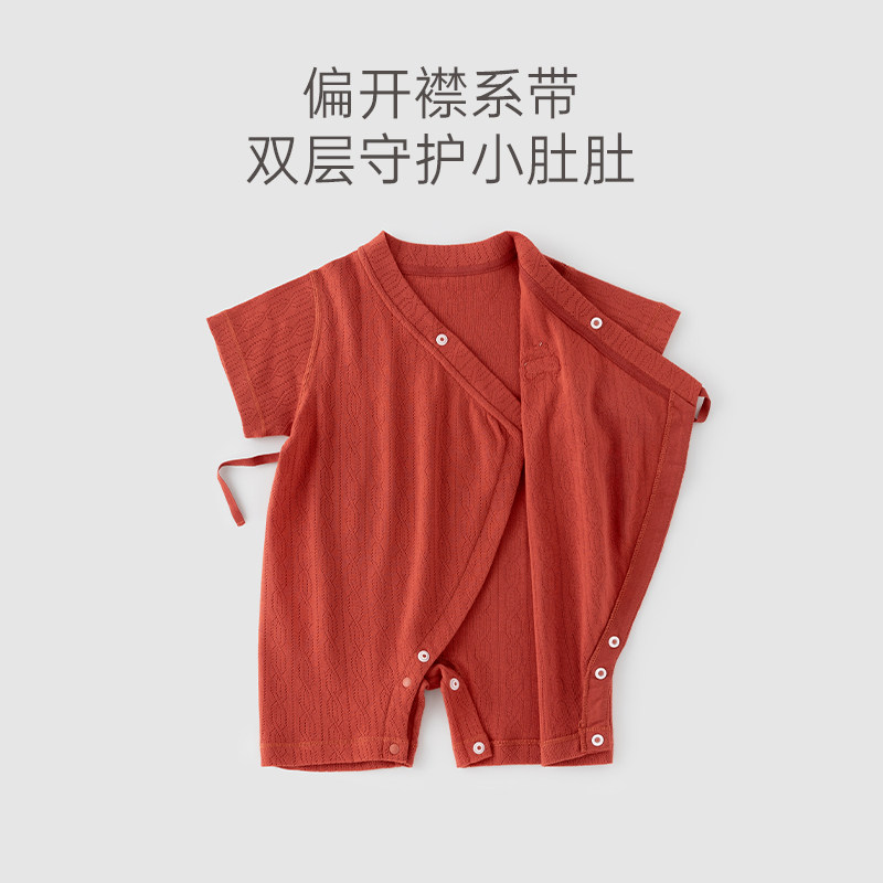 木生棉婴儿短袖连体衣夏季新生儿纯棉哈衣宝宝红色满月周岁礼爬服