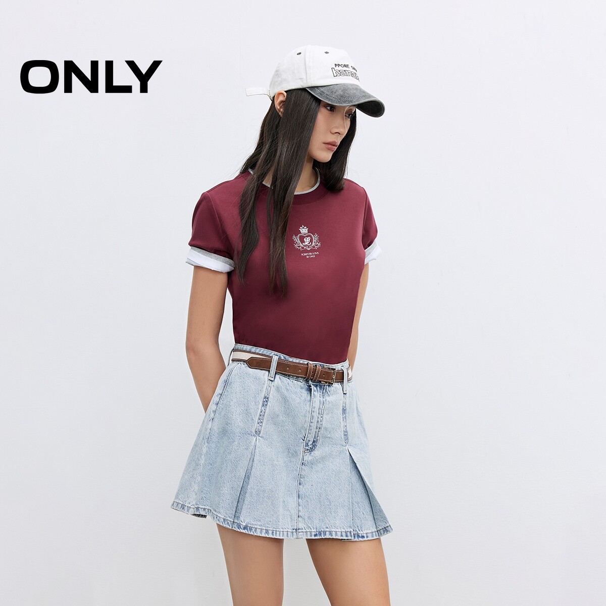 【ONLY奥莱】春夏学院风设计A字显瘦版型百褶裙牛仔短裙半身裙女