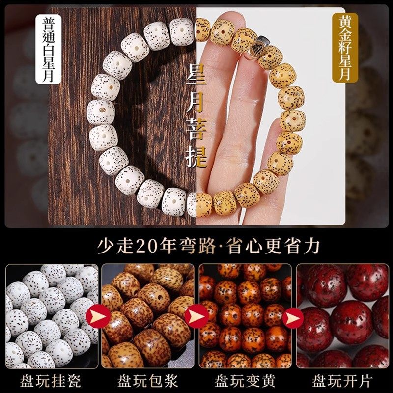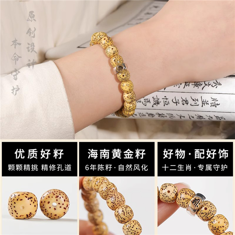 海南黄金籽星月菩提子手串十二生肖单圈佛珠文玩手链鸡油黄陈籽