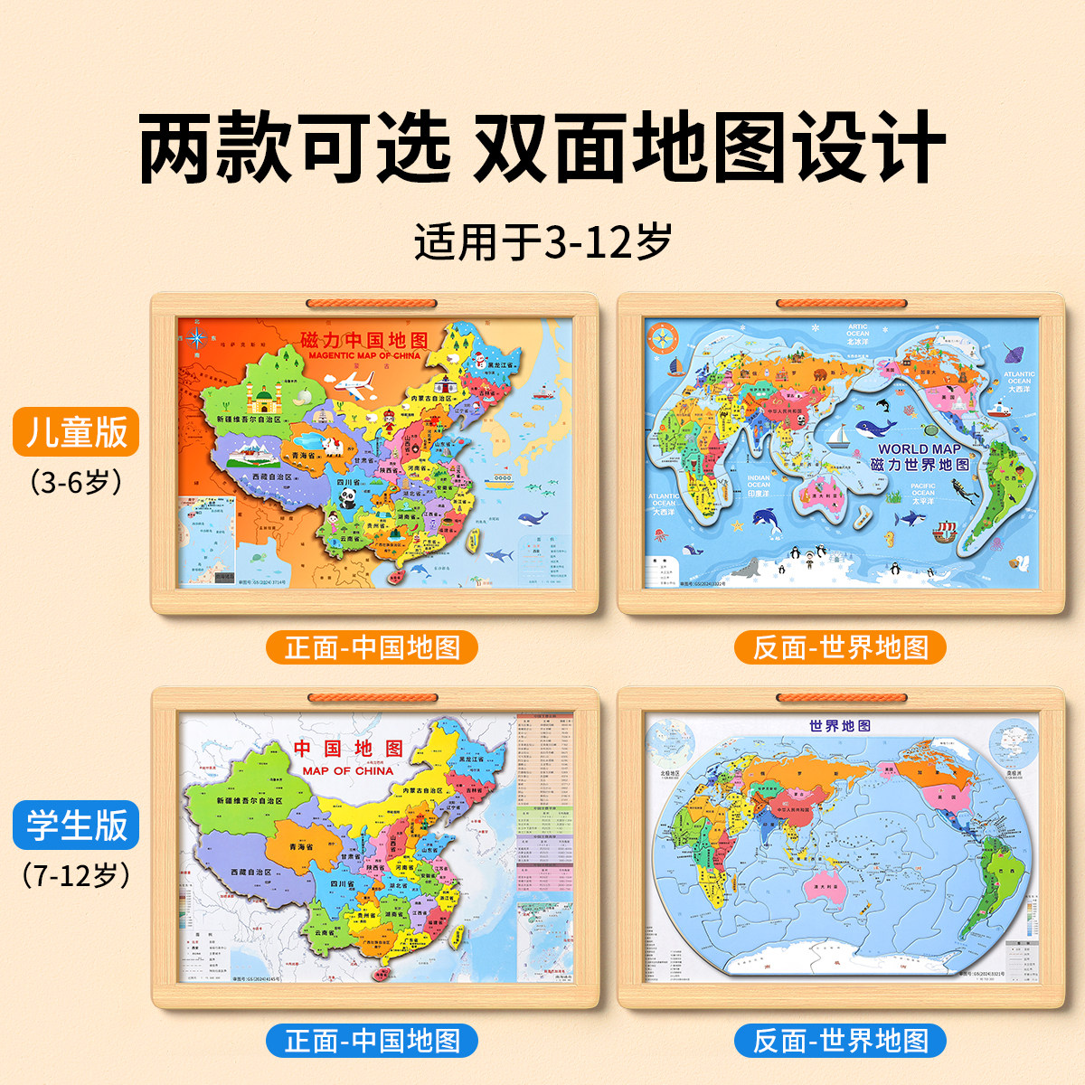 世界中国地图拼图儿童房挂画挂图客厅沙发背景墙面立体装饰画卫星