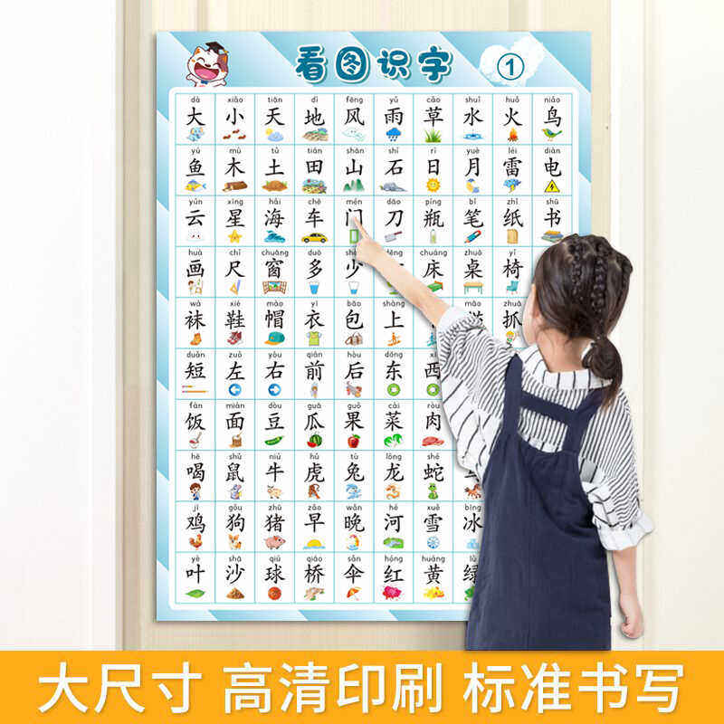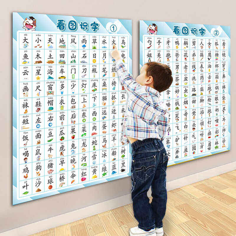 儿童宝宝看图识字挂图幼儿园小孩启蒙早教认字汉字表学习神器墙贴
