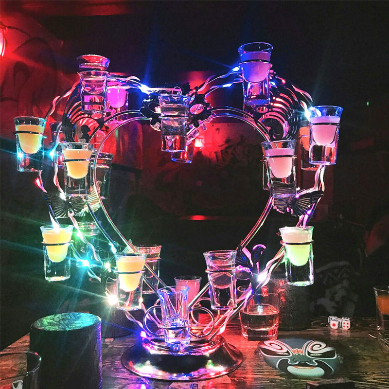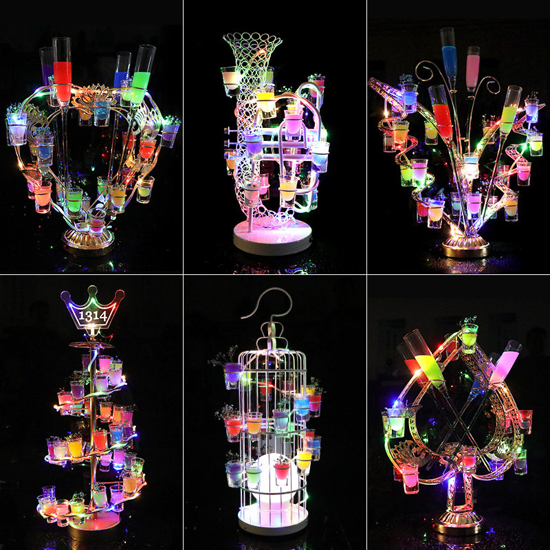 鸡尾酒子弹一口杯酒吧KTV派对网红调酒师心形铁艺LED充电发光杯架