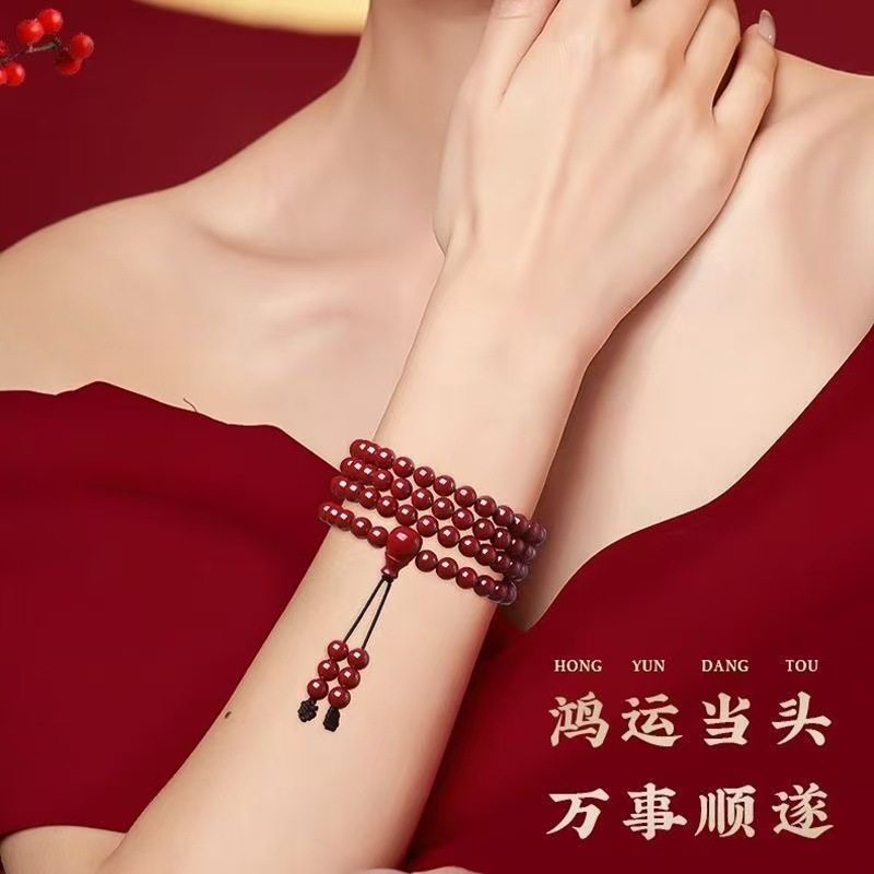 原矿朱砂手串紫金砂帝王红砂108颗佛珠念珠好运手串手链女散批发