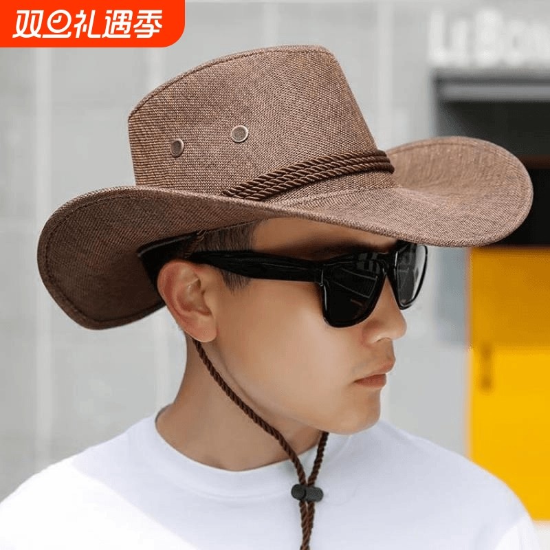 西部牛仔帽男渔夫帽女爬山沙漠防晒帽户外露营遮阳帽子徒步登山帽