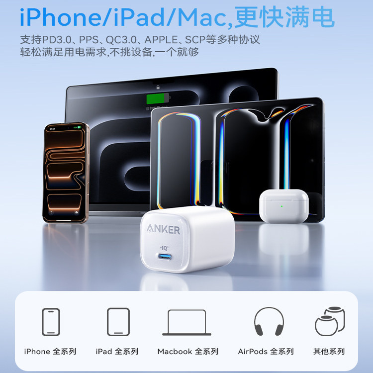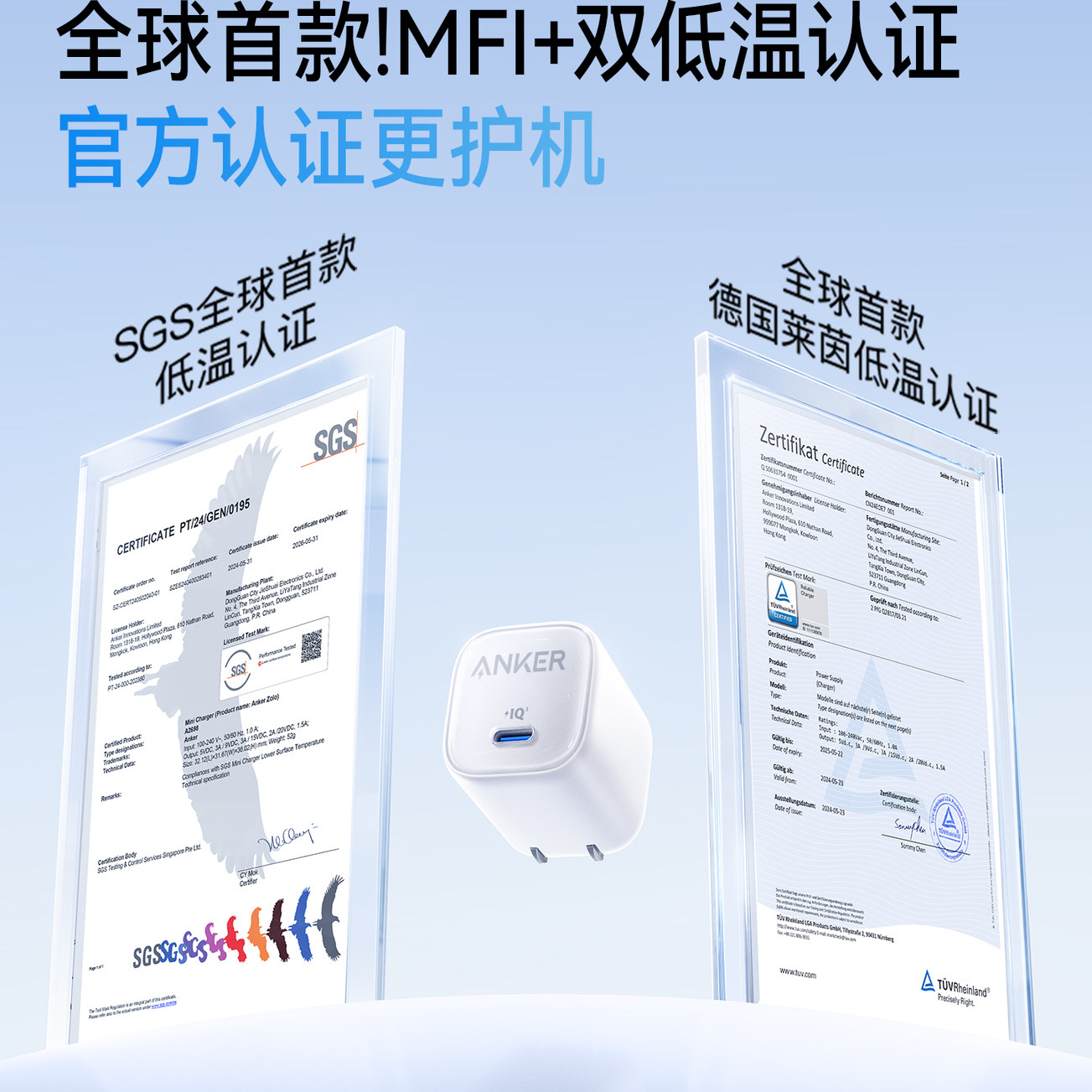 Anker安克30W适用iPhone17苹果17充电器20W冰点快充手机充电头PD快充充电头14ProMax/13数据线Typec官方正品
