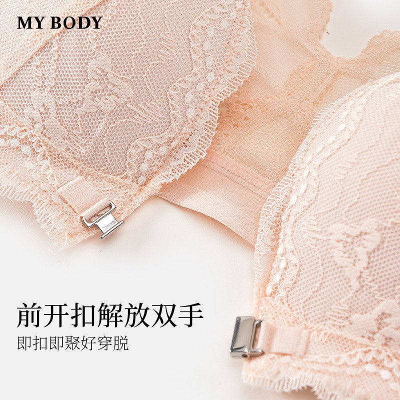 商场同款MYBODY新款内衣女聚拢小胸前扣防下垂收副乳蕾丝美背文胸