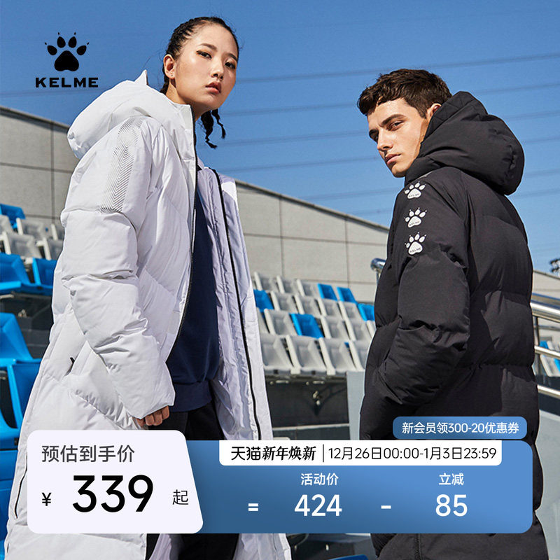 KELME卡尔美 运动棉服男长款过膝大衣棉袄足球训练棉衣连帽外套冬