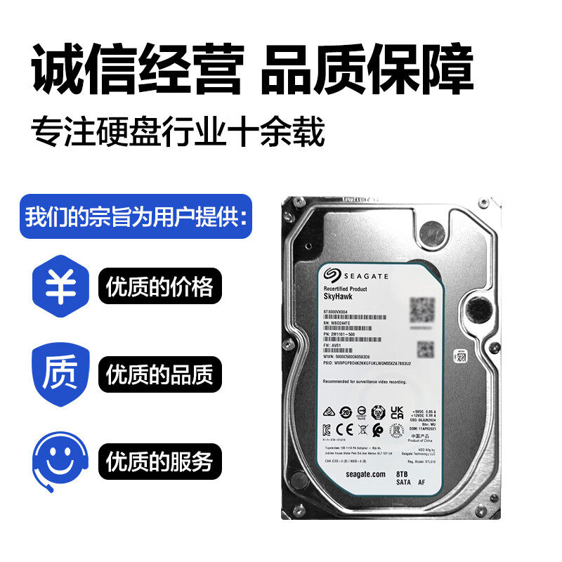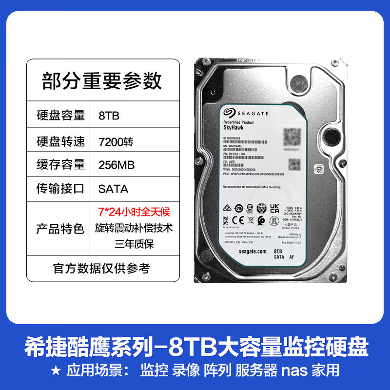 希捷 ST8000VX004 酷鹰8tb安防录像机监控专用垂直机械硬盘7200转