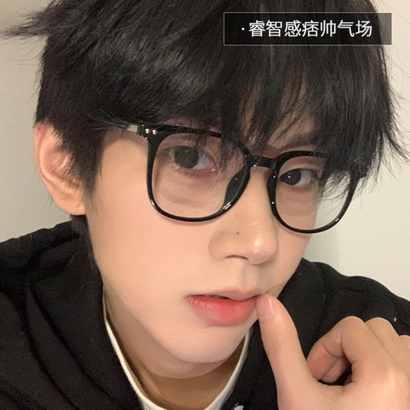 男生黑框近视眼镜男款可配度数高级感大框显瘦平光无度数眼睛镜框