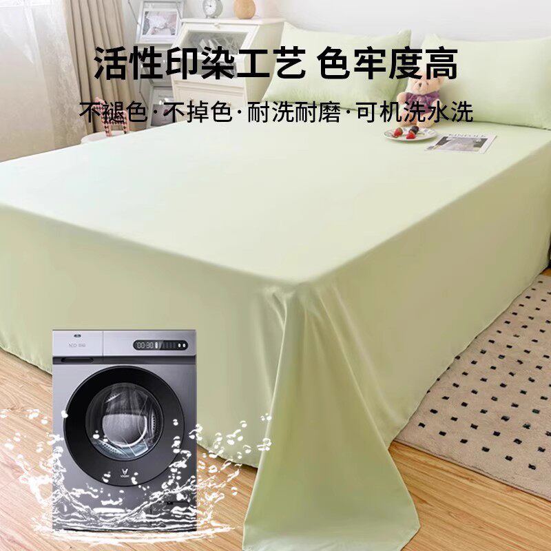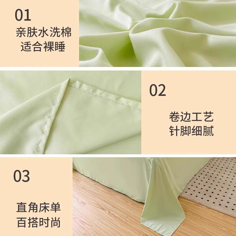 水洗棉床单单件家用1米5学生宿舍单人被单子枕套三件套四季通用