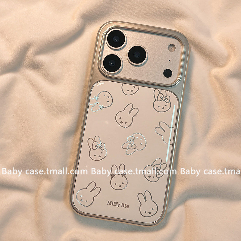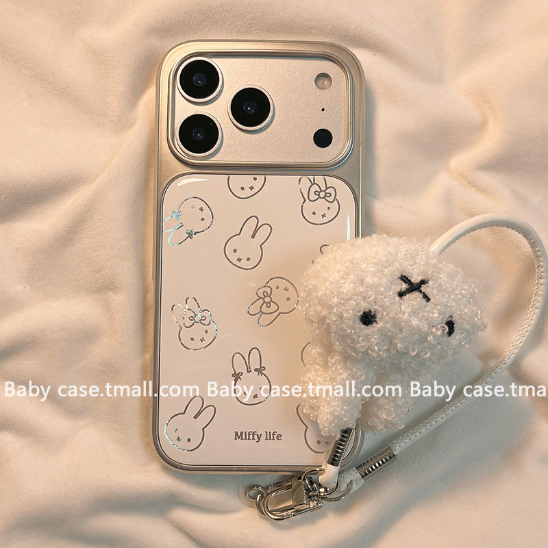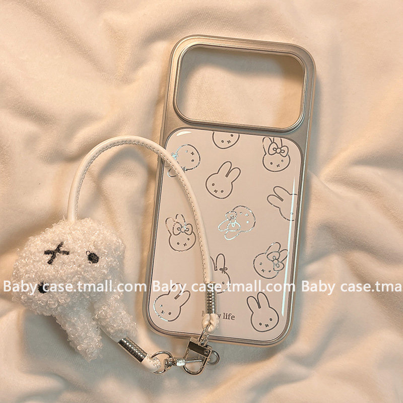 北比韩系ins简约镂空线条米菲兔适用苹果17promax手机壳iphone16新款15pro带挂绳17可爱14少女15电镀16pm全包