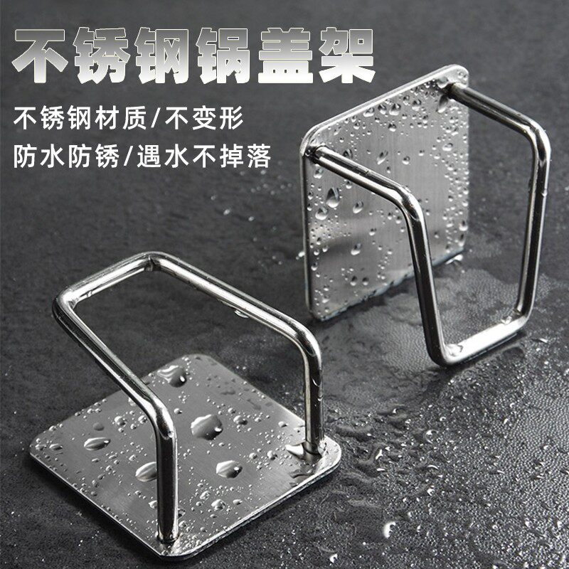 农村大锅盖收纳架壁挂神器免打孔挂钩强力粘胶土灶厨房家用不锈钢