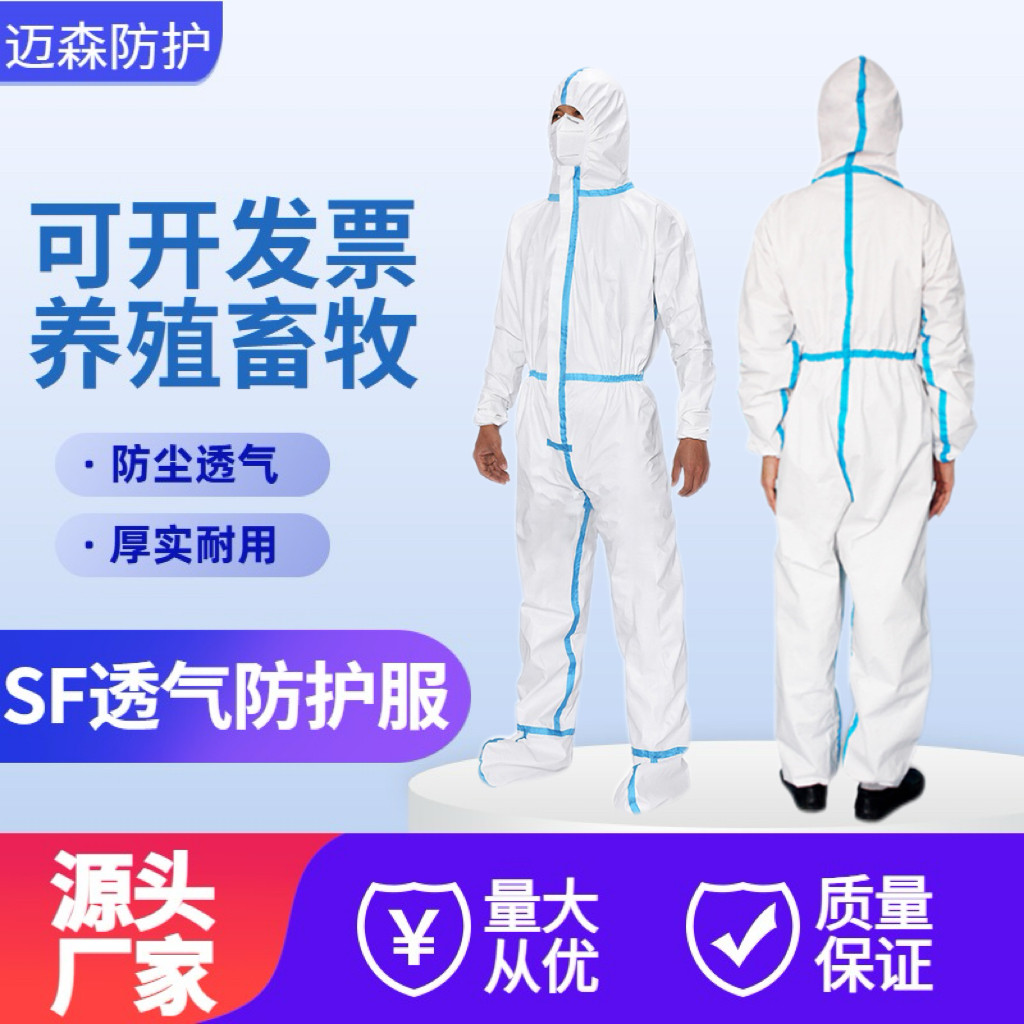 一次性无纺布防护服连脚连帽隔离防尘衣养殖场工作服养猪场隔离衣