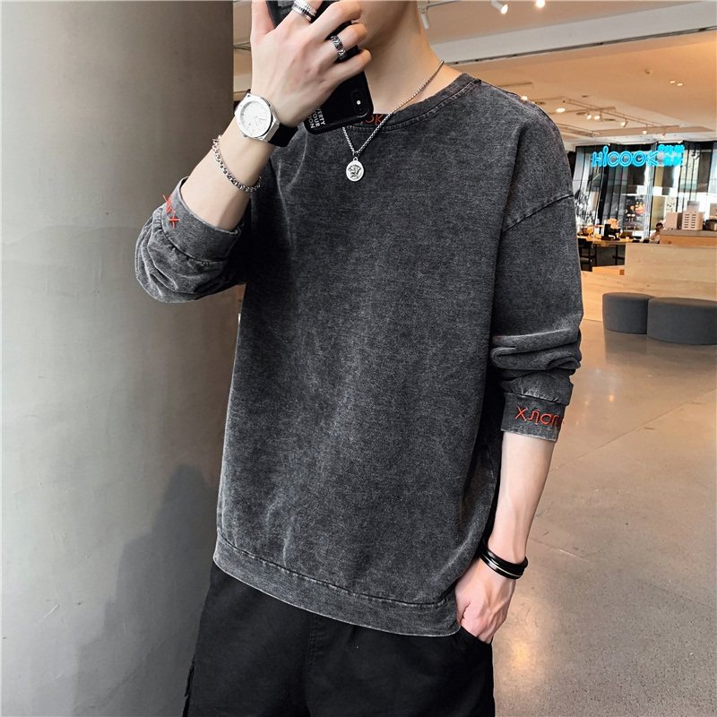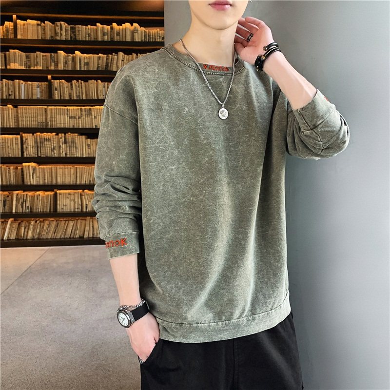 男士长袖t恤2025新款上衣棉感春秋内搭衣服港风打底衫男装卫衣潮