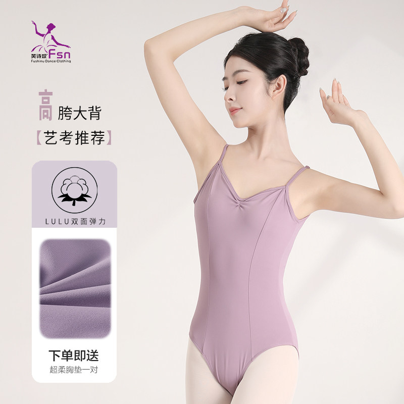 芭蕾舞蹈服基训形体服吊带练功连体服艺考高胯v领设计体服体操服