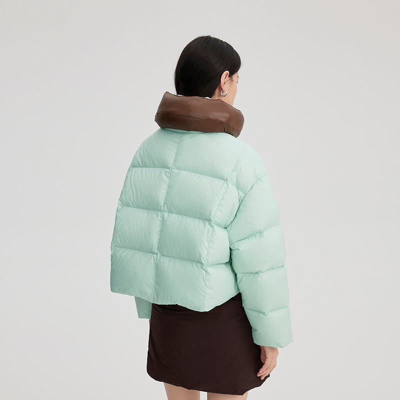 【鞠婧祎同款】鸭鸭2025年冬新款百搭短款女士纯色立领羽绒服外套