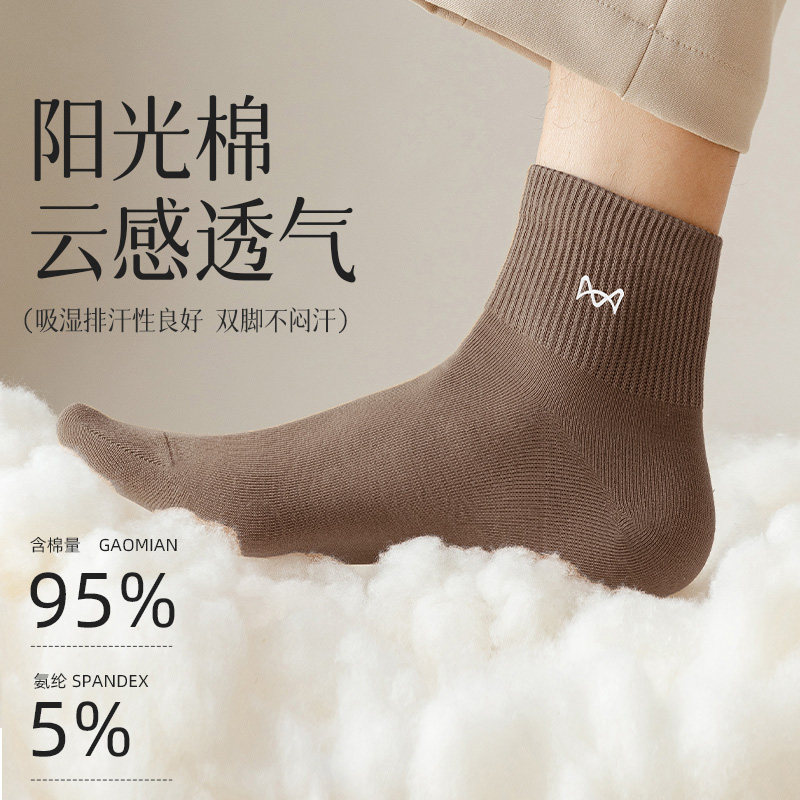 棉竹屋袜子女款短袜纯棉春秋季2025新款爆款无骨防臭中筒运动袜