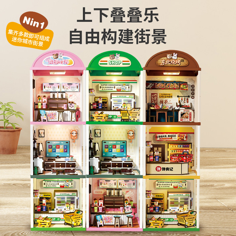 一言粉红兔迷你小屋冰淇淋贩卖店小兔子卧室厨房女孩过家家玩具