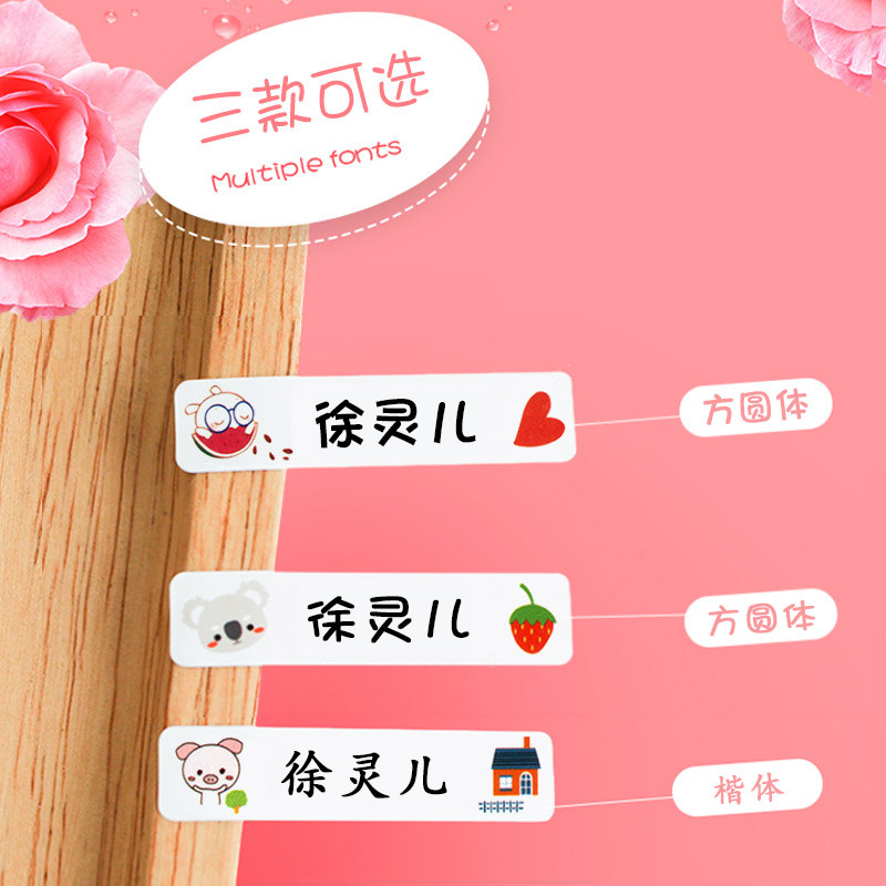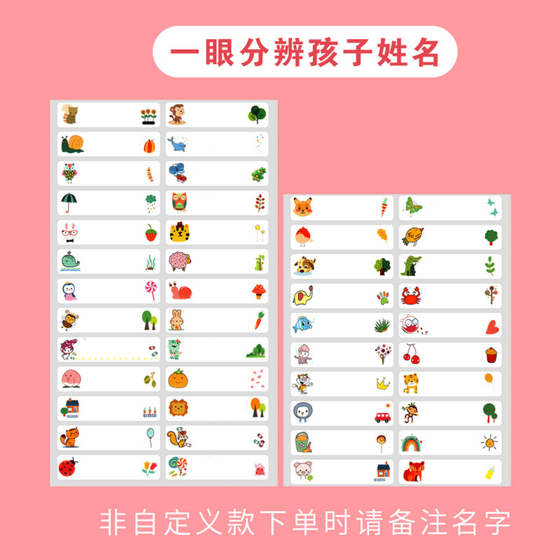 防水姓名贴定制小学生名字贴纸幼儿园可爱卡通杯子水杯铅笔文具标签签名记号贴纸订制防撕坏自粘不干胶定做