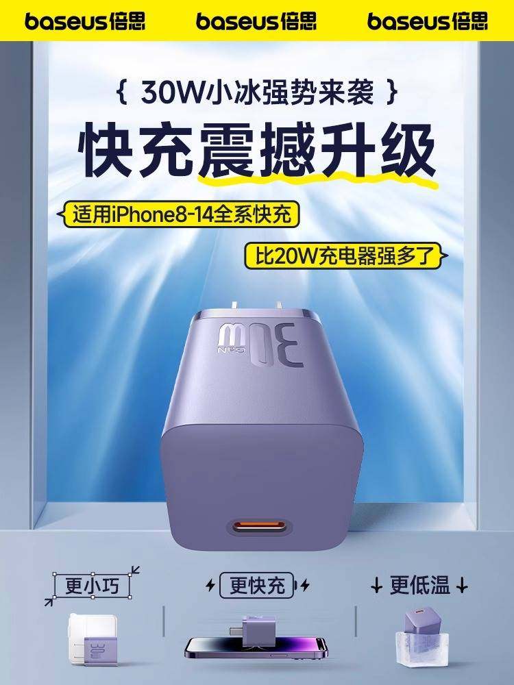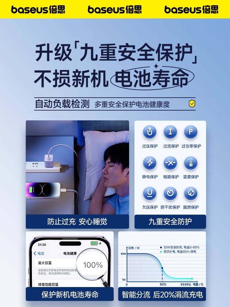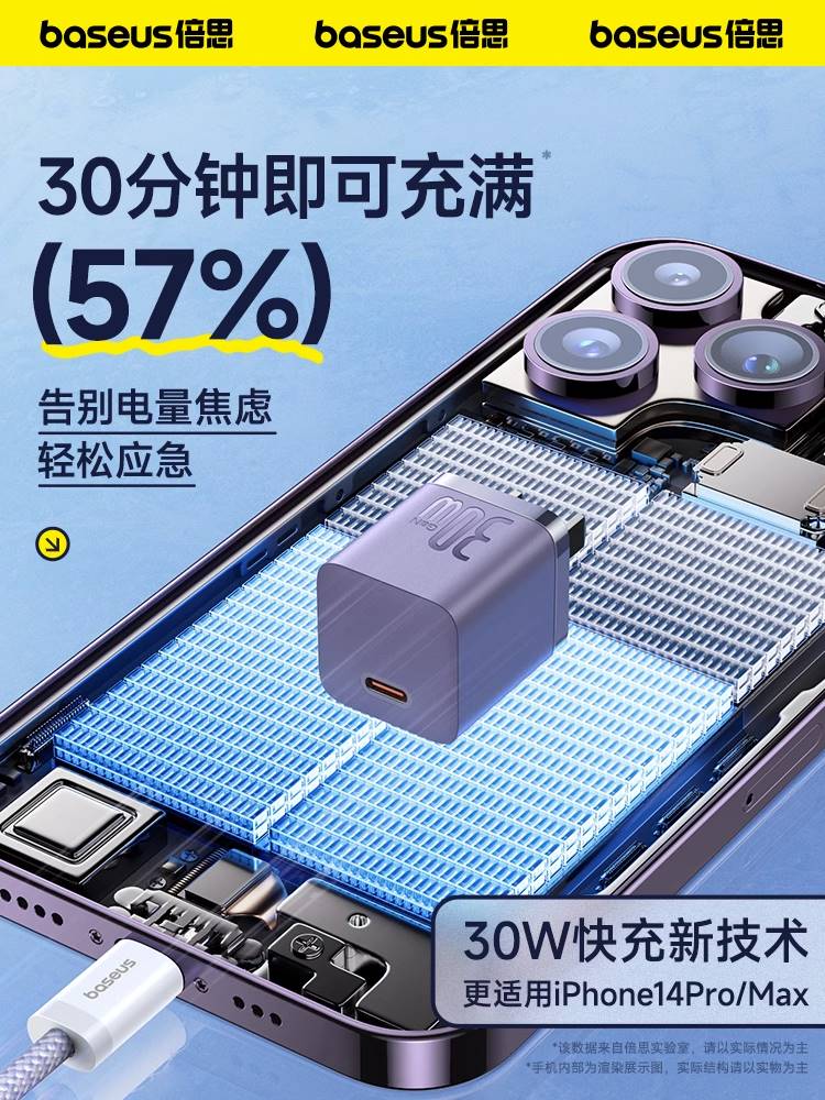 倍思充电头30w氮化镓充电器20W适用iPhone15苹果13promax快充PD27w插头14plus手机12充电器线套装11平板typec