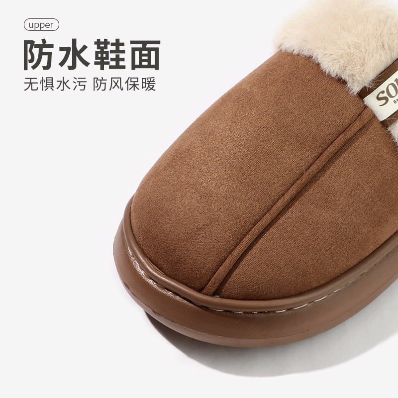 红豆踩屎感棉拖鞋女士秋冬季室内家居2025新款毛绒保暖情侣棉拖男