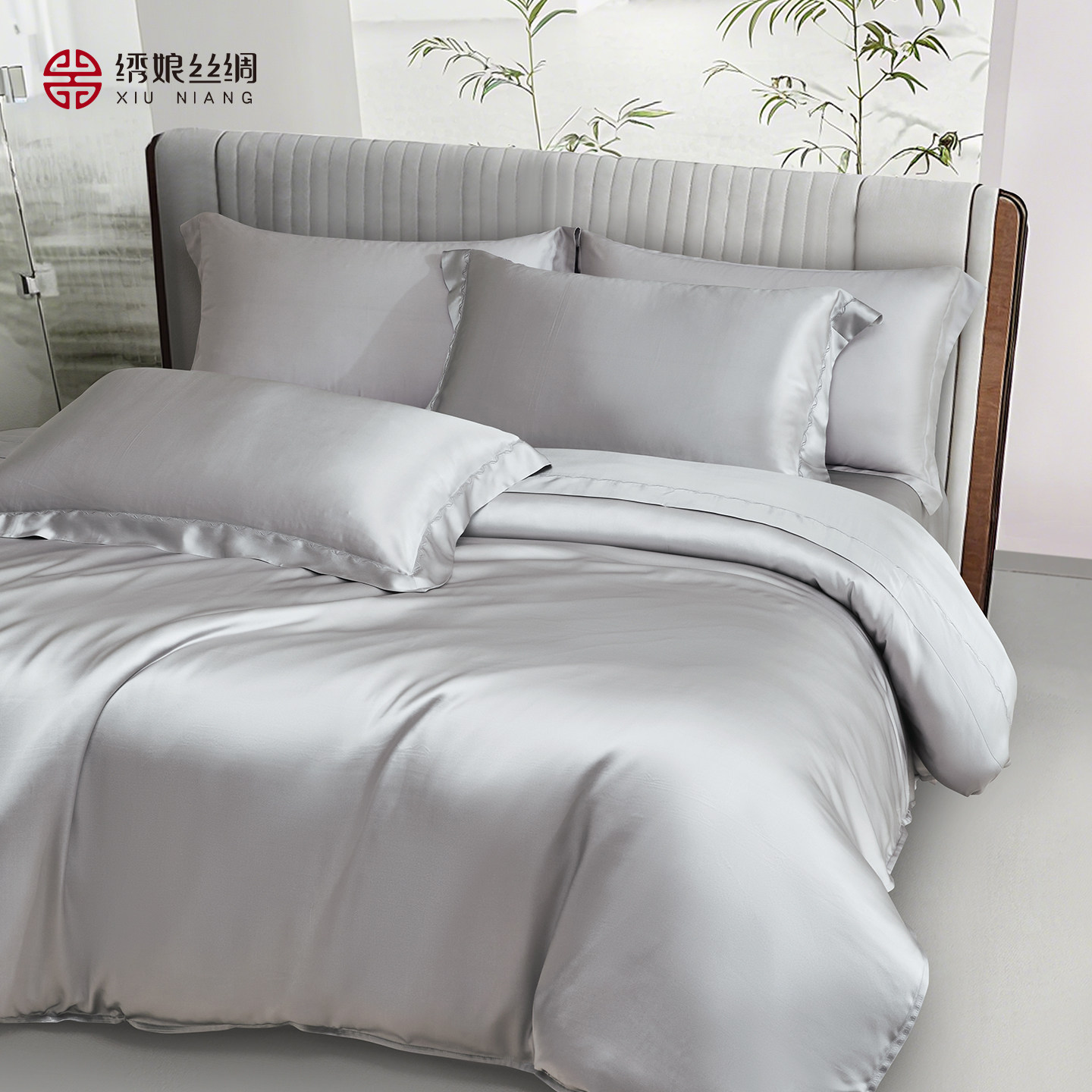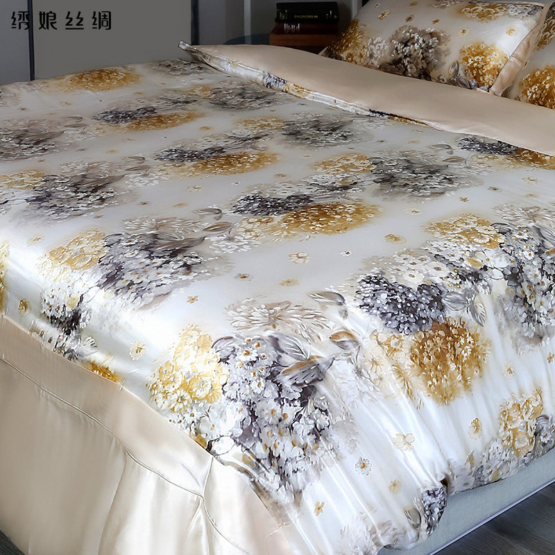绣娘丝绸真丝床上四件套桑蚕丝高级奢华被套床单床上用品裸睡神器