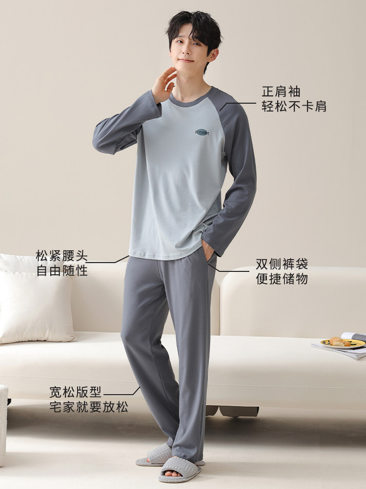 男士睡衣春秋款纯棉长袖青少年学生男孩大童2025年新款家居服套装