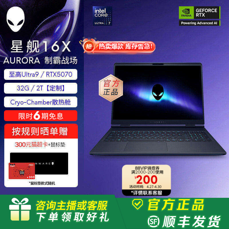 [88VIP消费券]外星人(Alienware)星舰16X外星人游戏本 Ultra9 至高可选32G RTX5070显卡【定制】