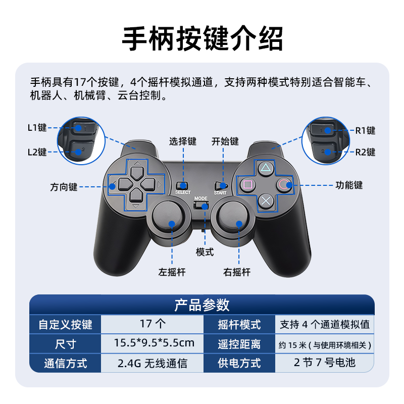 PS2手柄 Arduino智能小车机器人遥控手柄 2.4G无线遥控器 STM32
