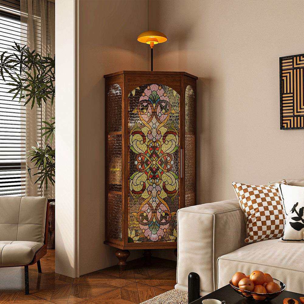 中古风实木三角柜客厅靠墙角落置物展示柜法式复古玻璃储物收纳柜