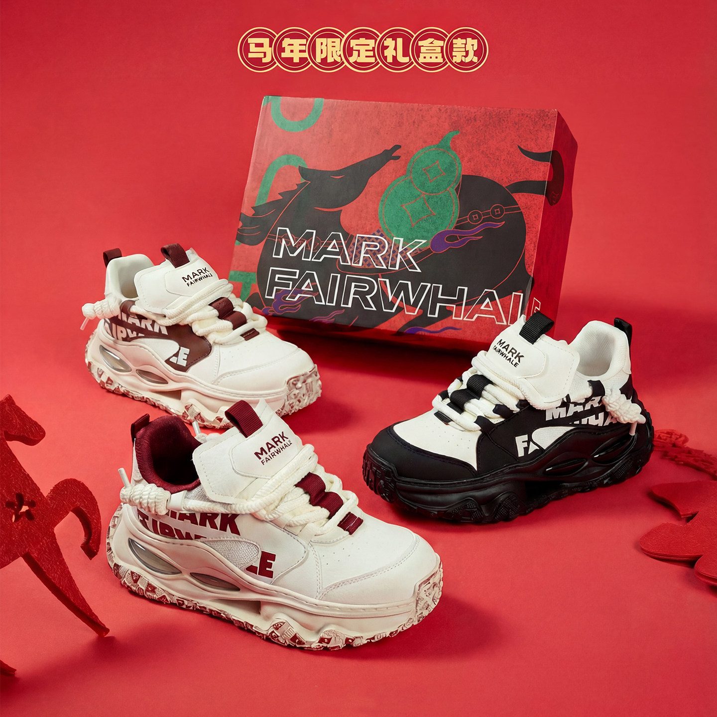 马克华菲男鞋厚底老爹鞋2026新款冬季黑白增高鞋子男士运动休闲鞋