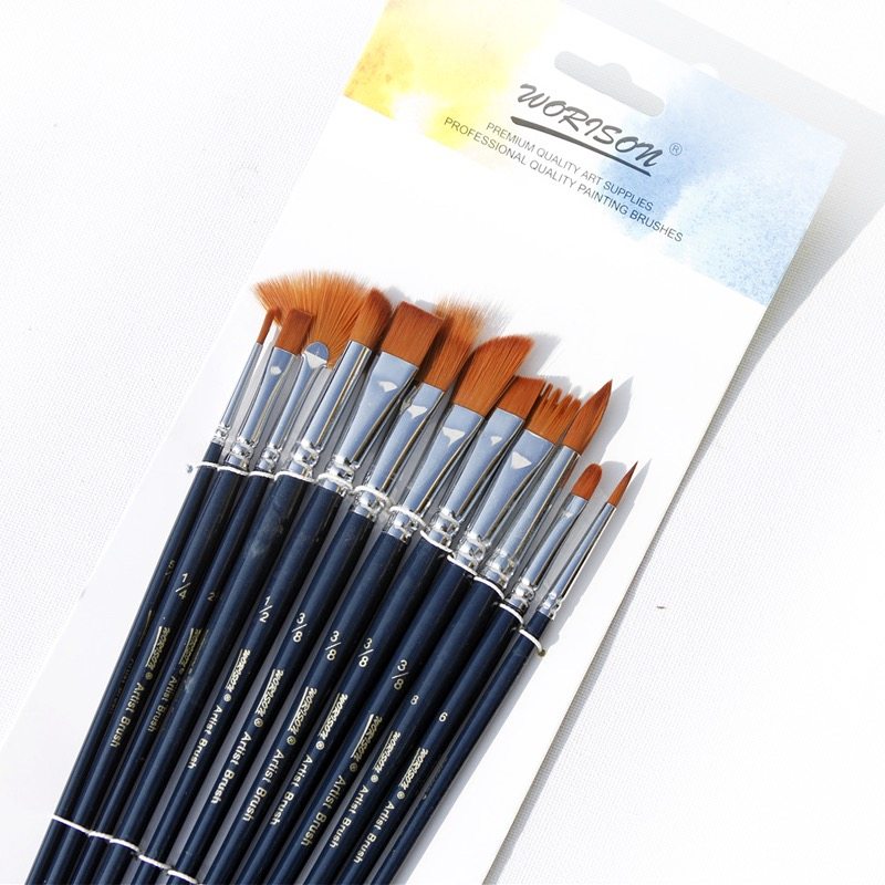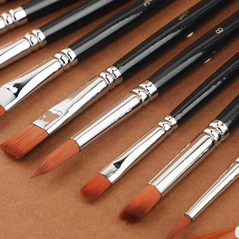 尼龙油画笔油漆笔水粉笔水彩笔丙烯画笔尼龙毛排笔1-12号套装