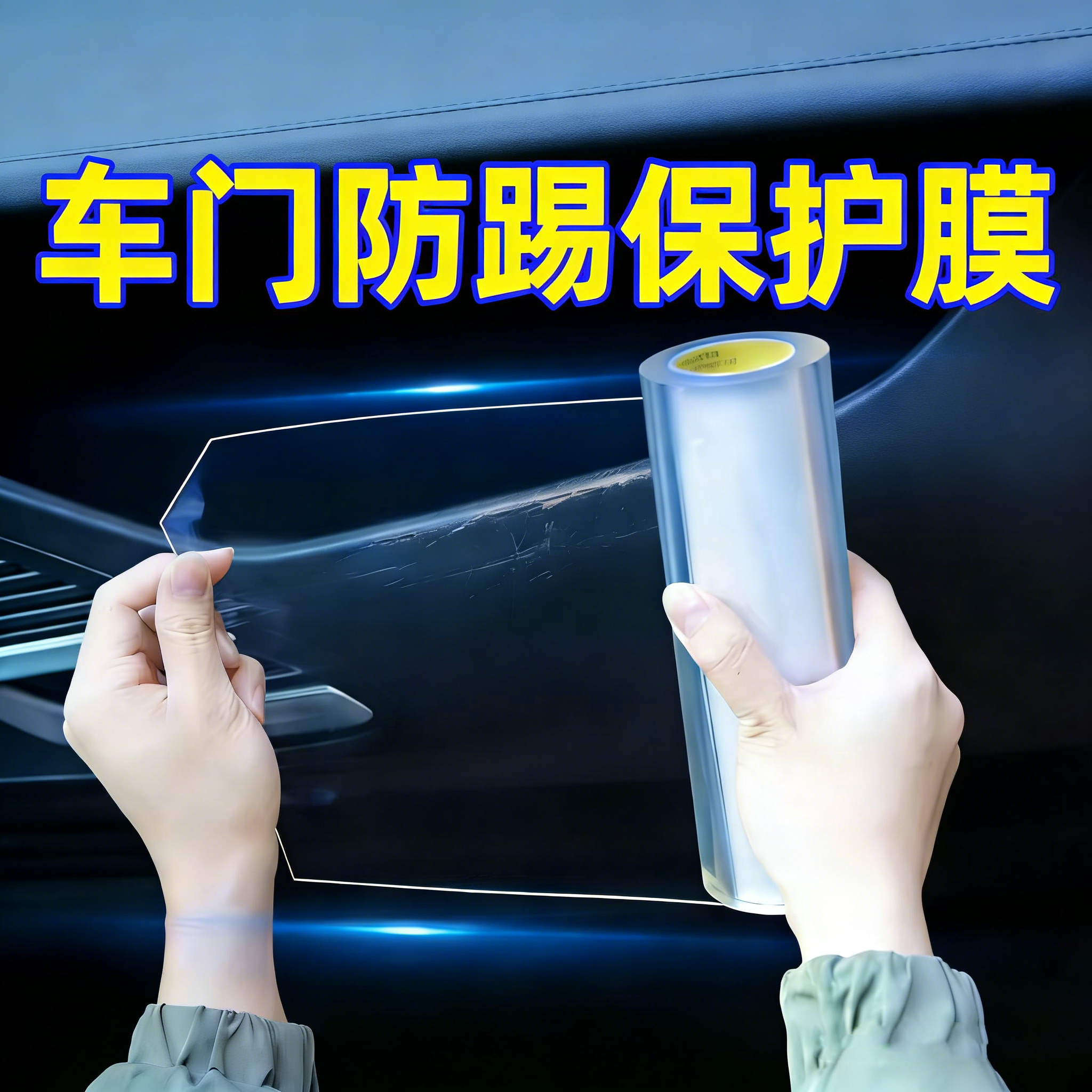 车门防踢贴犀牛皮汽车保护膜车内门槛条防踩踢透明贴纸后尾箱防撞防刮防擦胶条隐形车衣修补贴纳米强力单面胶