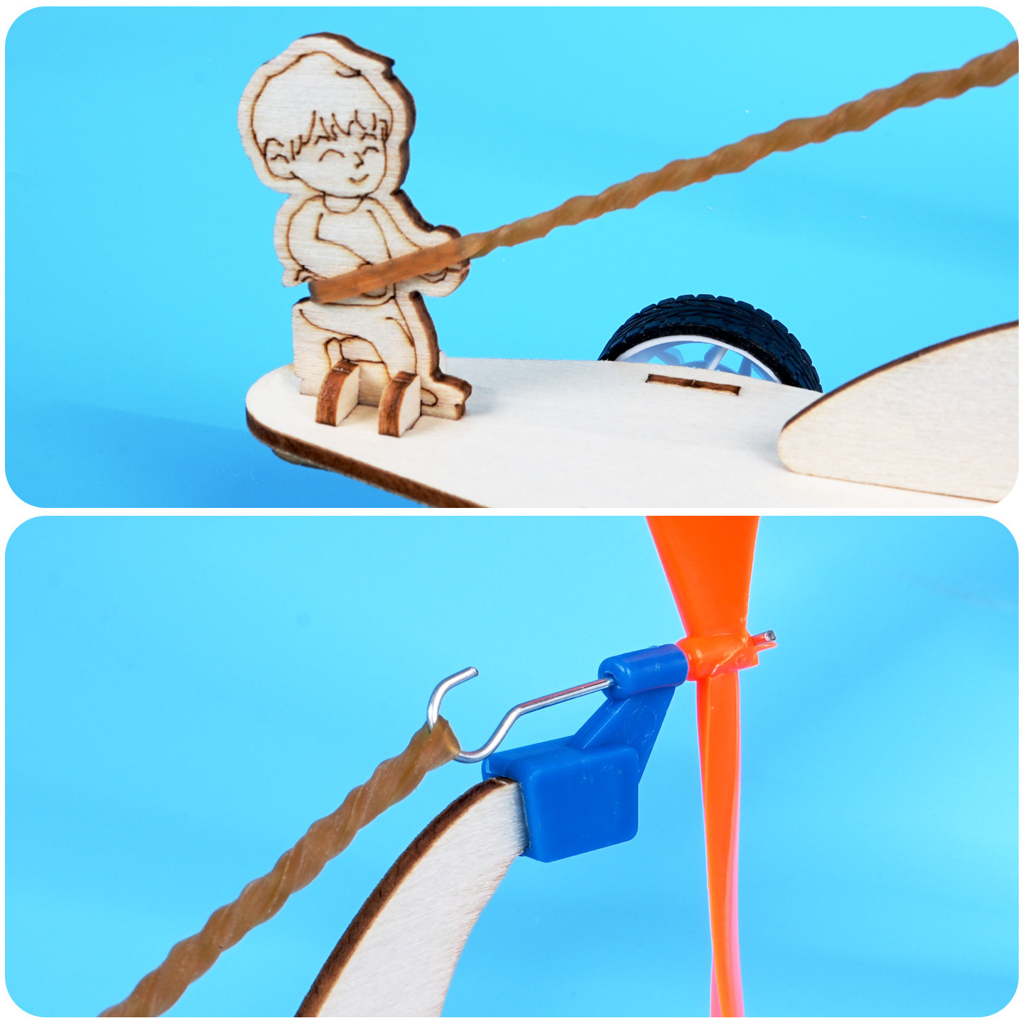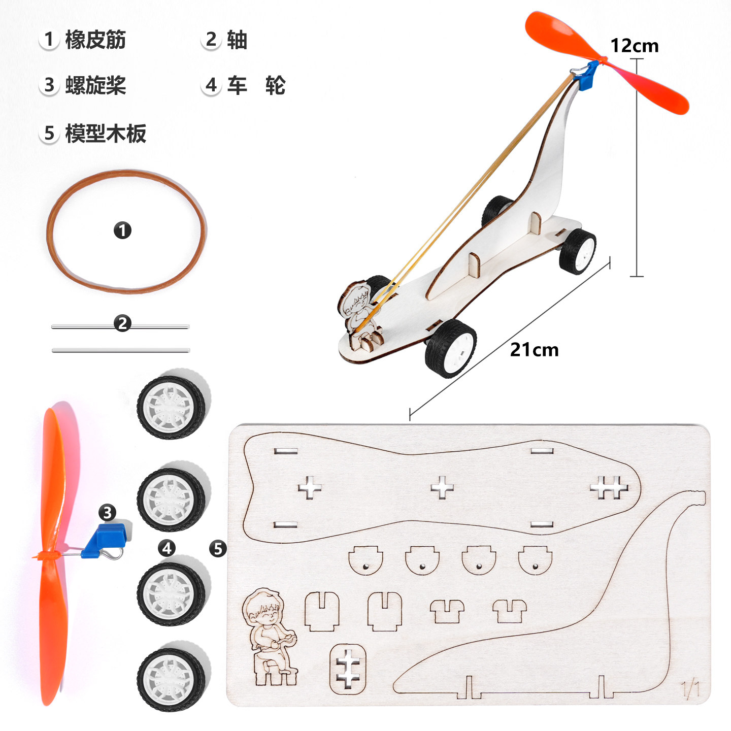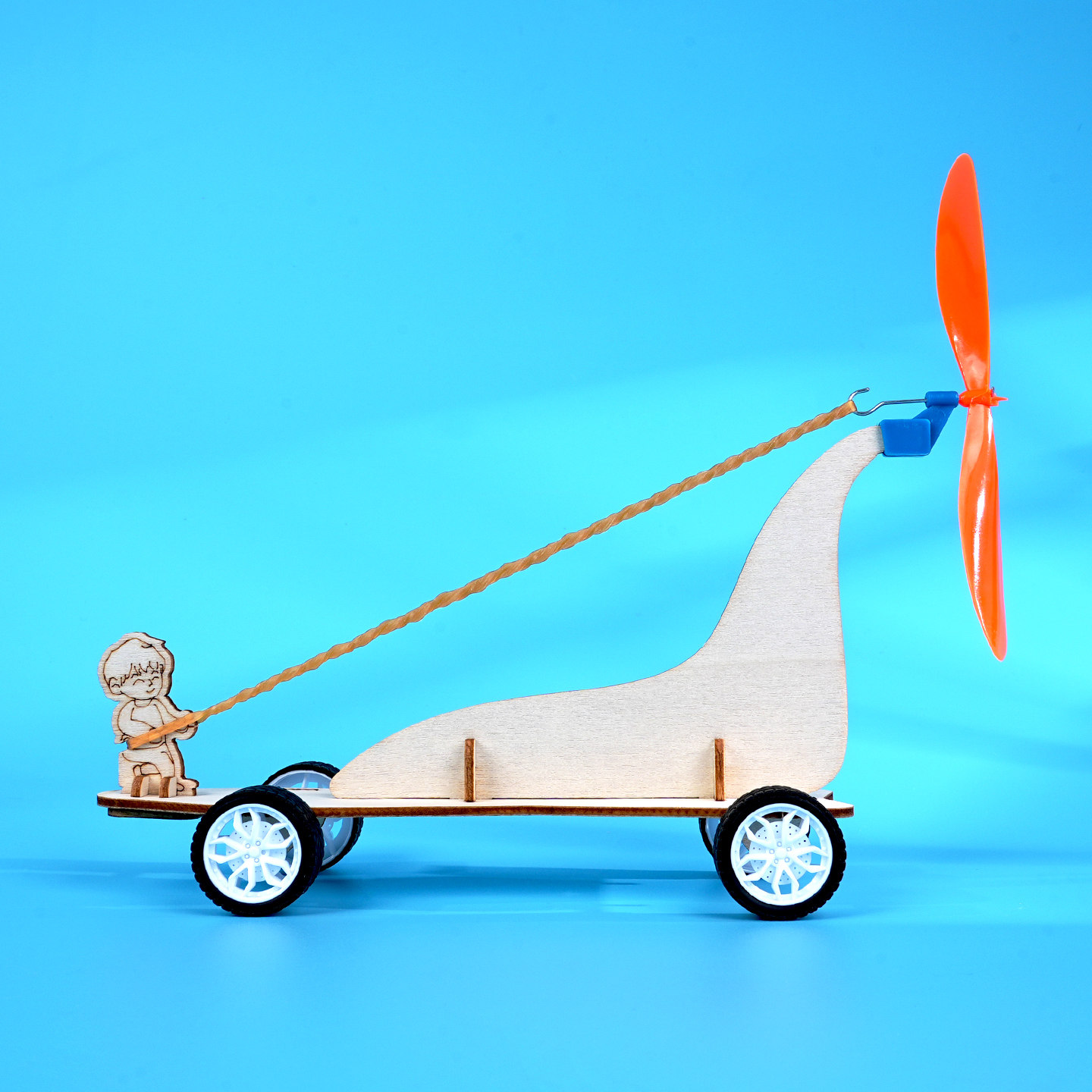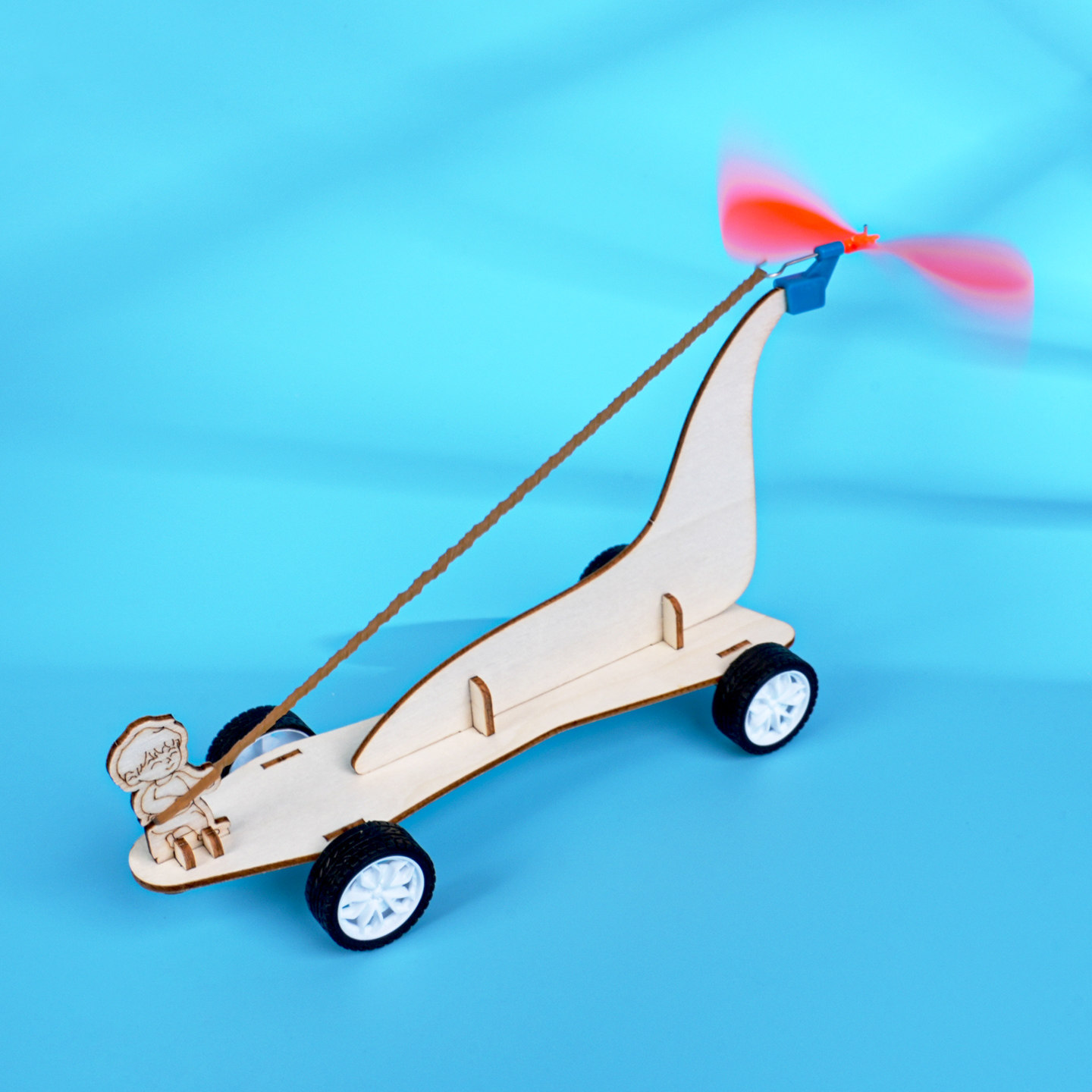 橡皮筋动力小车木制手工DIY风反作用力跑车小学生STEAM科学实验新