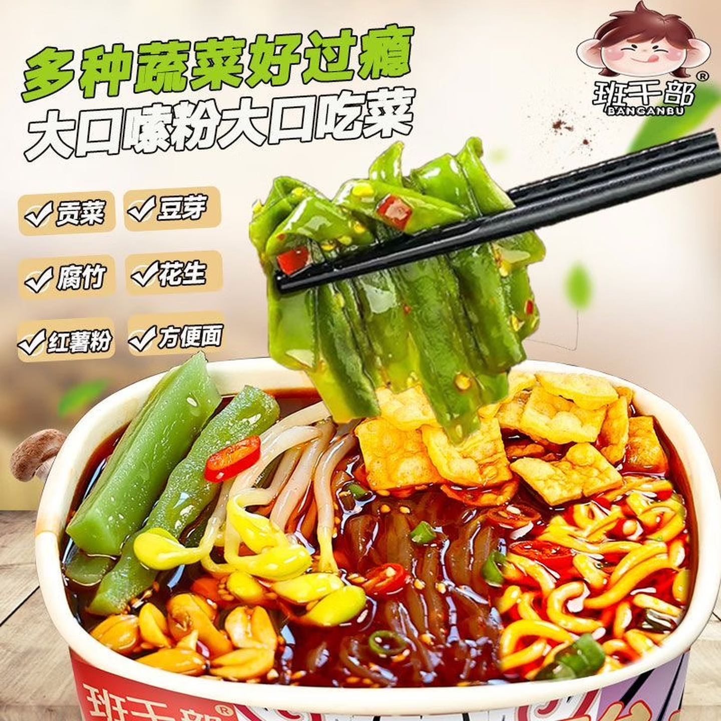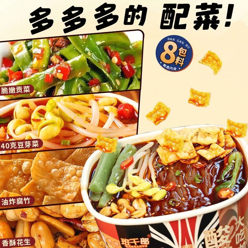 班干部贡菜酸辣粉桶装重庆红薯粉夜宵冲泡方便速食豆芽酸辣粉面