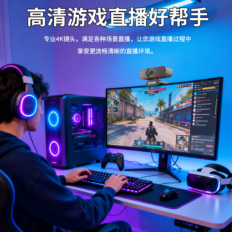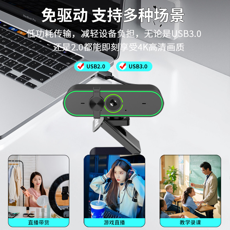 恒侨通电脑高清摄像头4k游戏直播美颜抖音台式淘宝主播usb摄影头