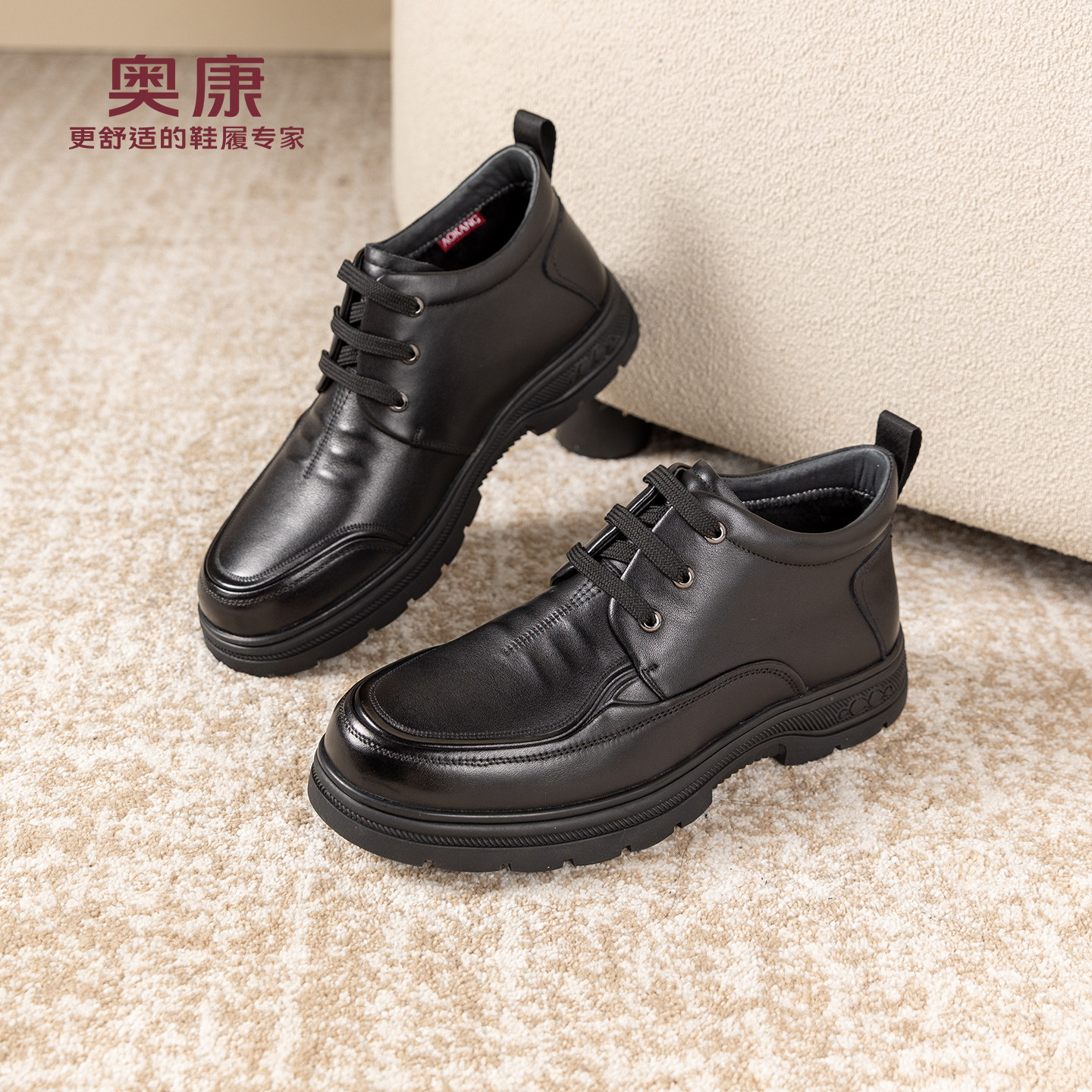奥康 男鞋2025冬季新款正装皮鞋时尚单鞋百搭工作加绒中帮棉鞋