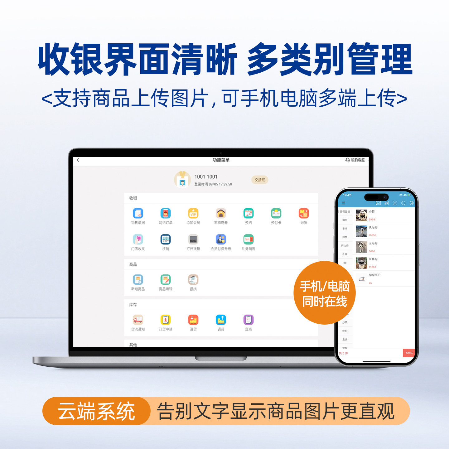 商米银豹宠物店收银系统管理一体机会员软件猫狗洗澡疫苗提醒驱虫寄养美容医疗洗护预约零售收款商用收银机