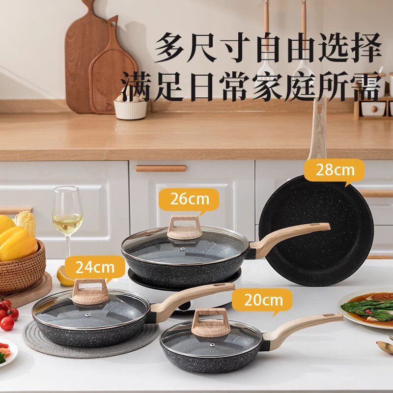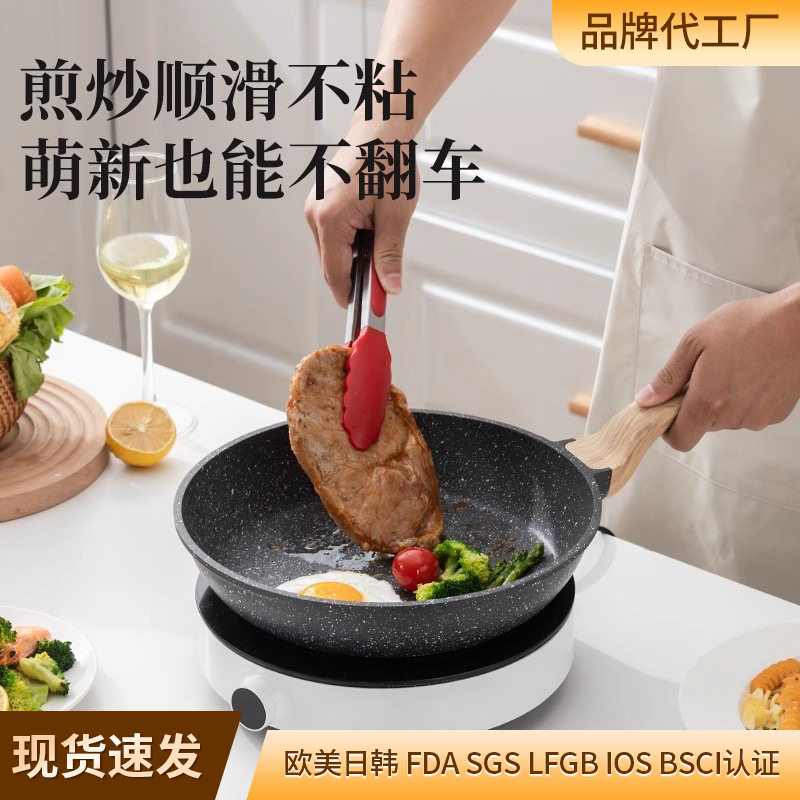 跨境铝压铸不粘锅煎锅家用麦饭石牛排锅煎锅平底锅少油烟电灶适用