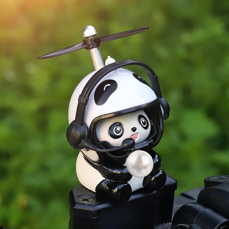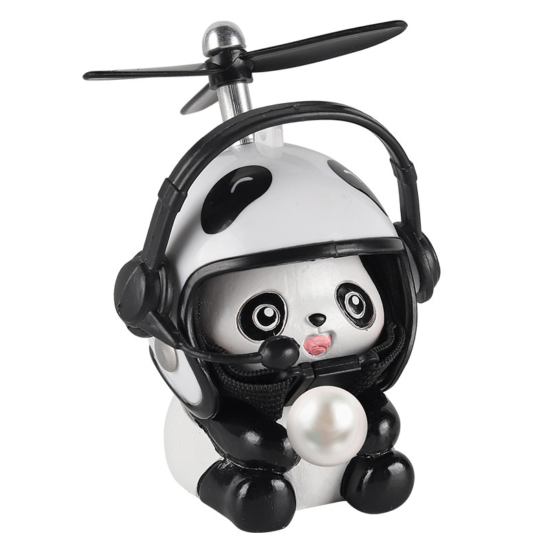 可爱熊猫风车竹蜻蜓电动车汽车载摆件后视镜摩托车自行机车装饰品