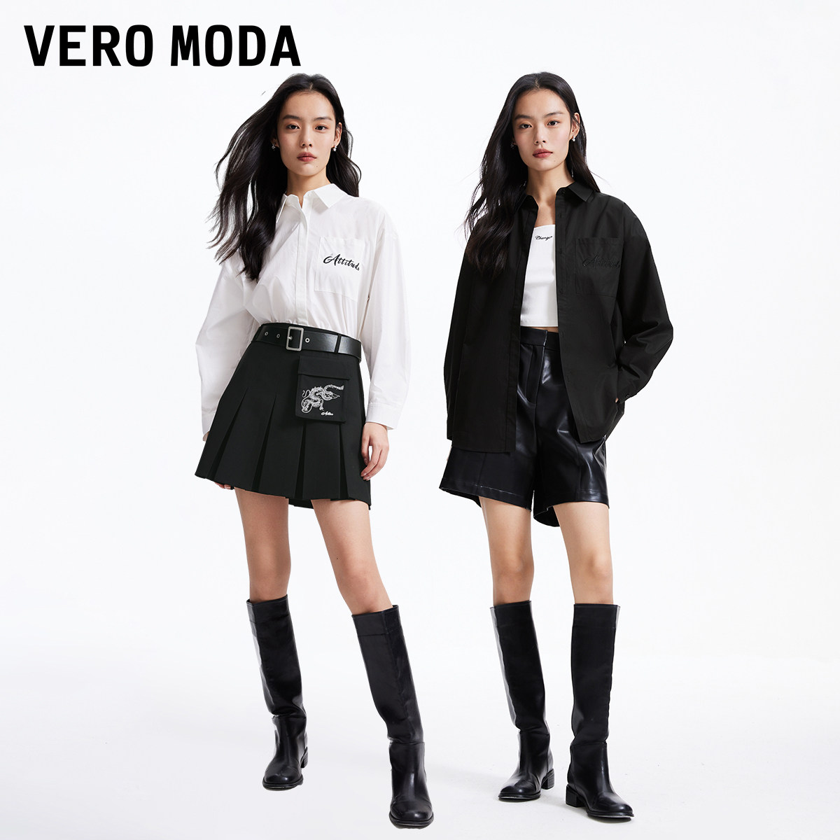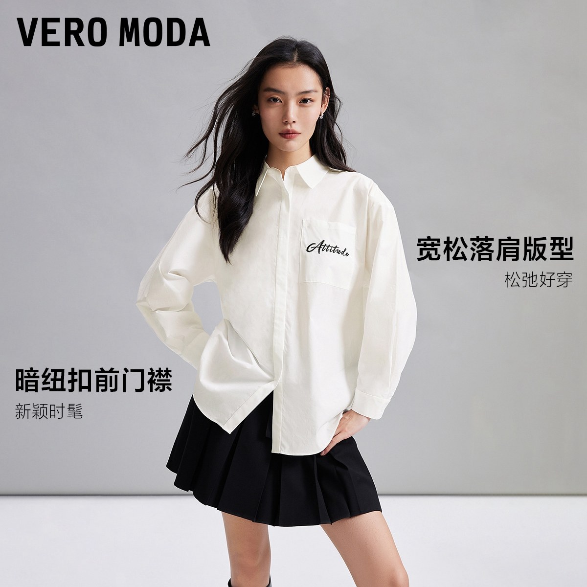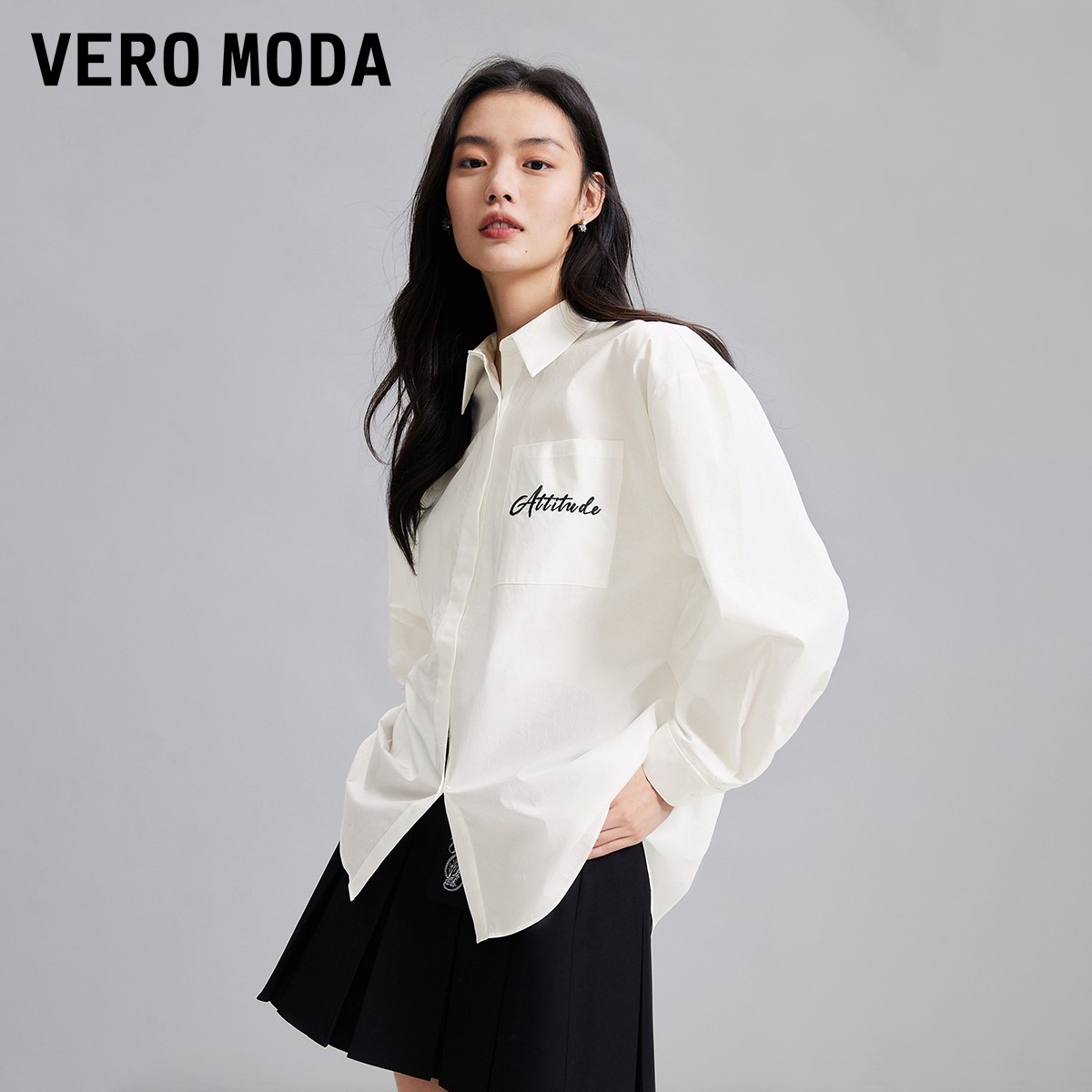 Vero Moda奥莱衬衫女秋季新款新中式纯棉宽松祥云龙刺绣上衣流行