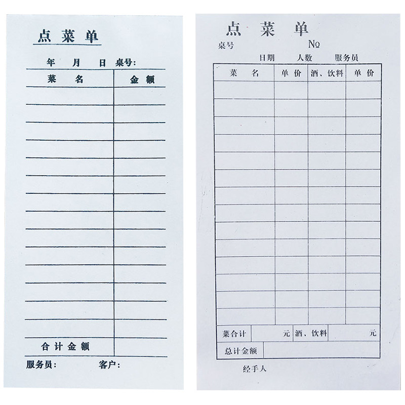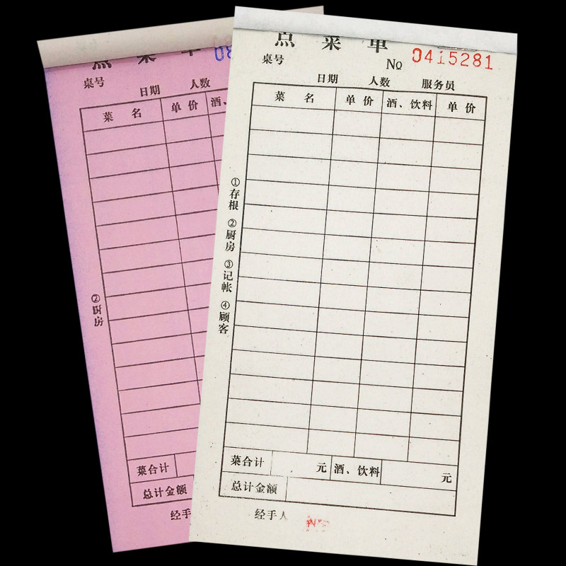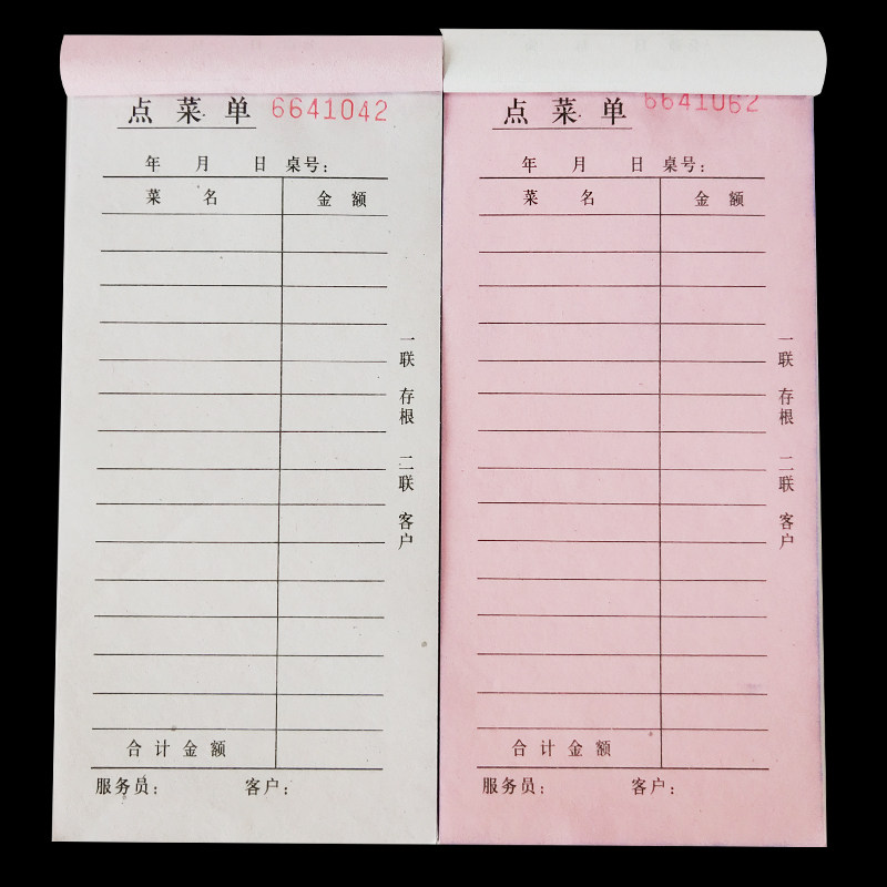 点菜单一联单联二联三联四联点菜单定制两联餐厅酒店饭店用餐饮单