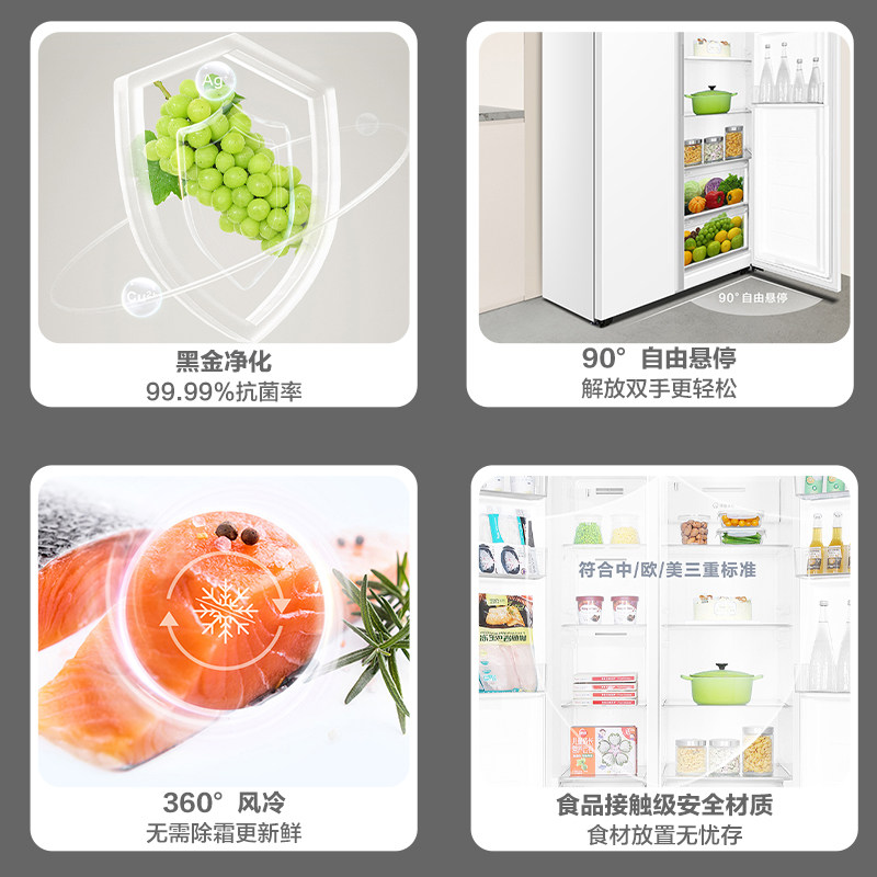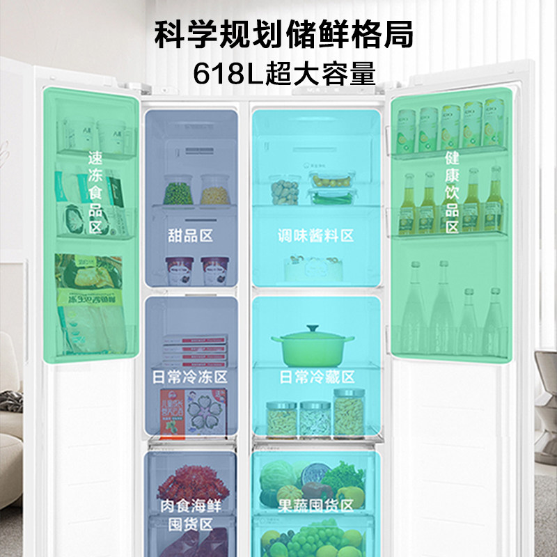 美的570+/606对开双开门两门大容量家用冰箱一级节能风冷无霜超薄